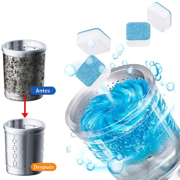 Si tu lavadora tiene mal olor, residuos de detergente o humedad acumulada, estas pastillas son la solución. Su fórmula efervescente elimina bacterias, sarro, moho y suciedad oculta, dejando tu lavadora limpia, fresca y funcionando mejor desde el primer uso.